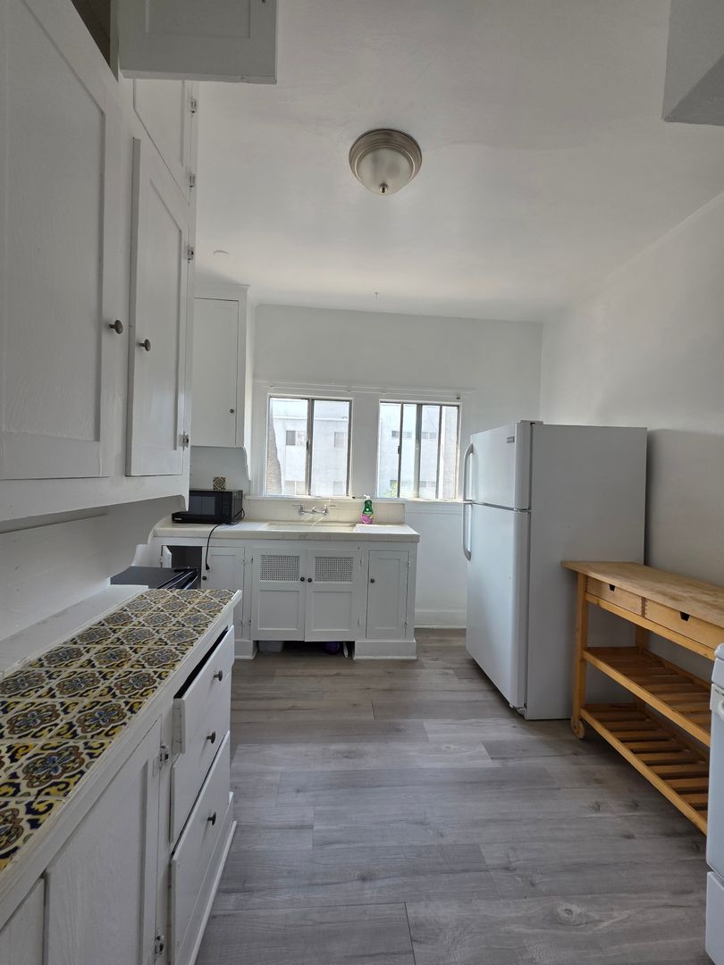 Ready for immediate move in is this large 2 bedroom 2 bath apartment located in prime West Hollywood, with ash wood laminate flooring throughout and tile in the kitchen and bath, with ac units, in-unit laundry, and built in heat. Comes with a parking spot in building's private parking lot.