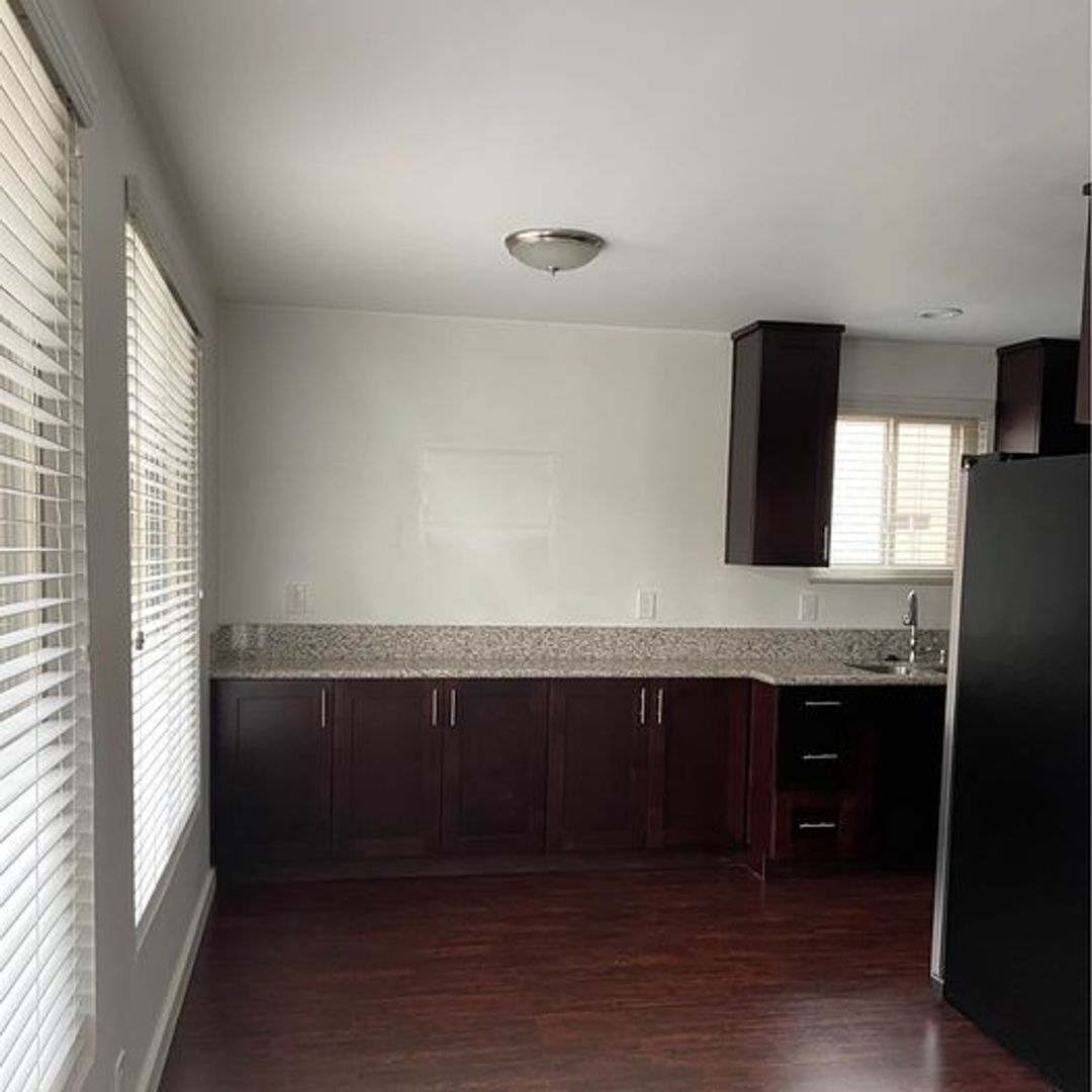 This spacious apartment is renovated with beautiful laminate-wood floors throughout, renovated kitchen with stainless steel appliances and granite counter-tops, and a remodeled bathroom with white tiles and stone everywhere, including the shower with rain shower head. Apartment also has its own private balcony. Lots of closet space with extra storage above your designated parking space (included).